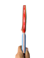 مقبض مريح: مقبض خشبي بتصميم Concave (مقعر) وألوان مميزة (أزرق بخطوط حمراء) لراحة اليد أثناء اللعب الطويل.