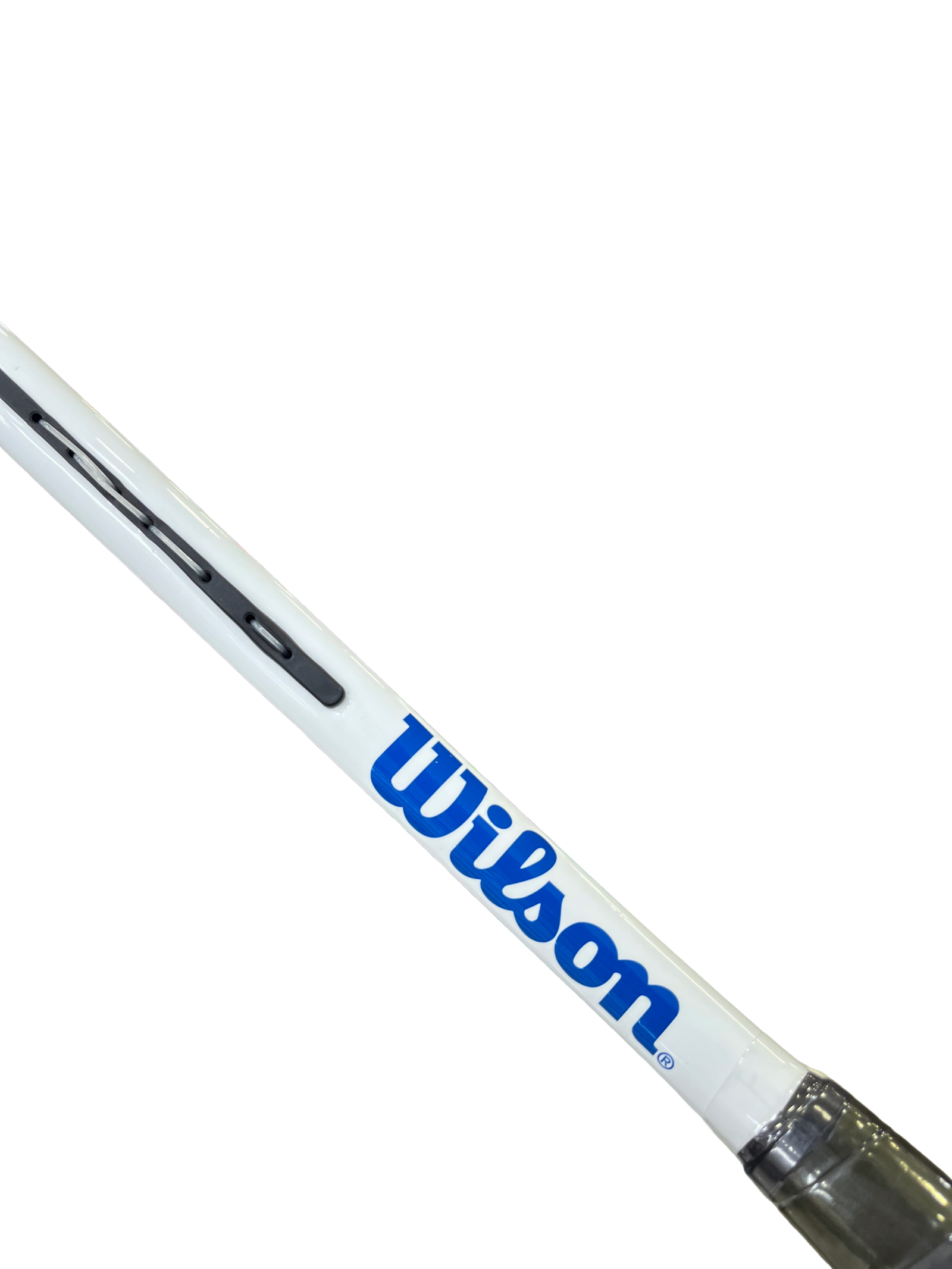 تصميم أنيق: لون أبيض عصري مع لمسات زرقاء وشعار Wilson المميز.